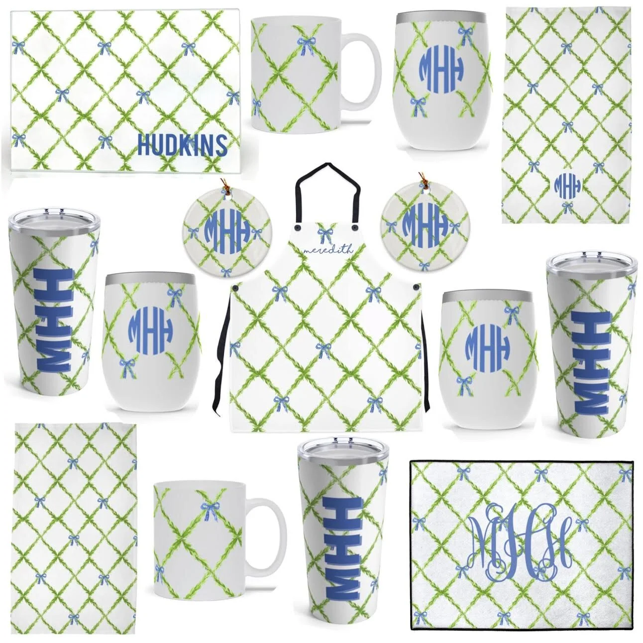 Our collection comes in french blue, ballet slipper pink and holiday red. You may prefer to personalize items or keep the clean lattice look. Pick what works for you.